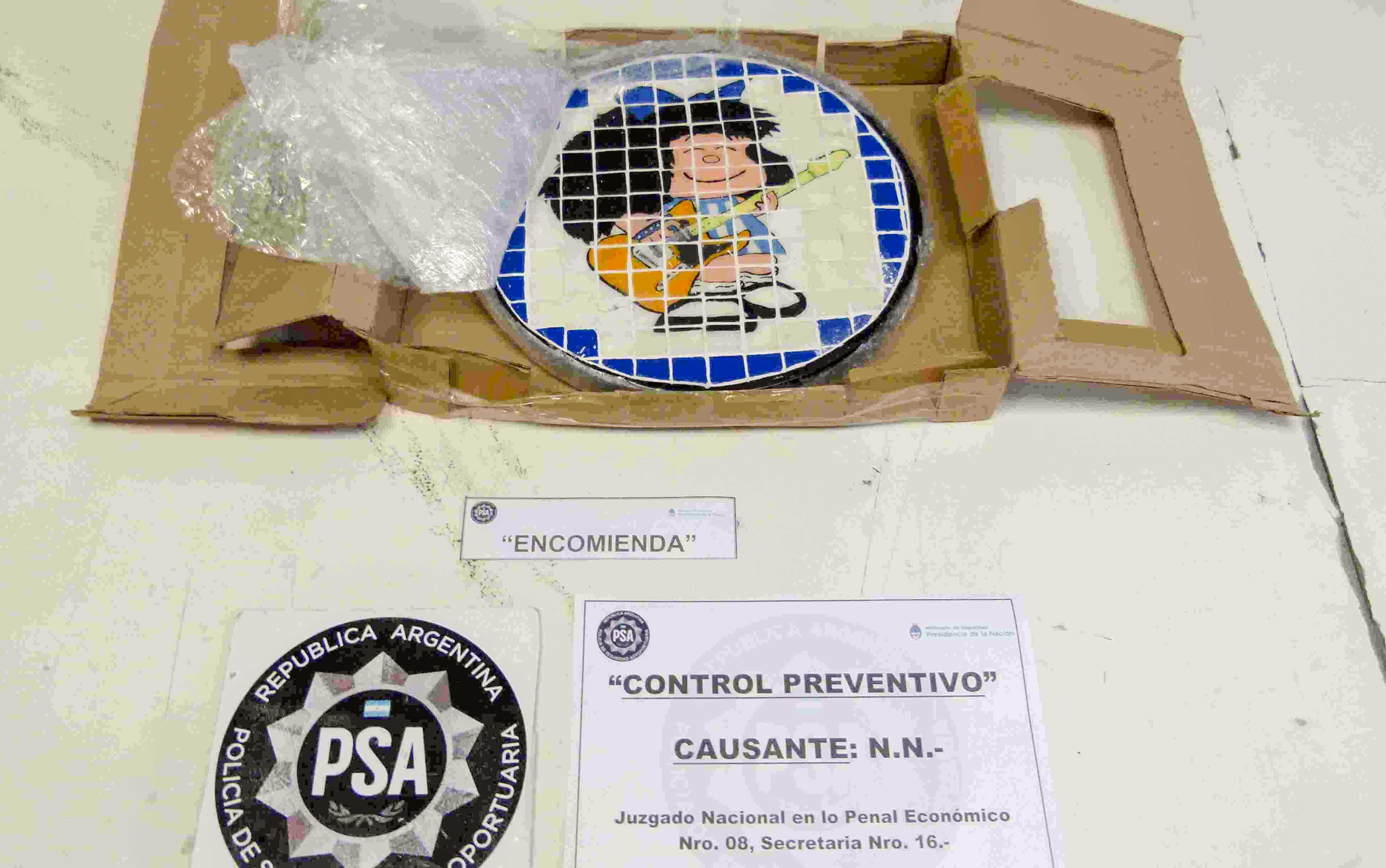 El estupefaciente oculto -314 gramos de cocaína- en esa figura fue detectado por un control de la Policía de Seguridad Aeroportuaria el 2 de junio pasado. El hecho comenzó a ser investigado por el fiscal Guerberoff, con la intervención del Juzgado en lo Penal Económico N°8.