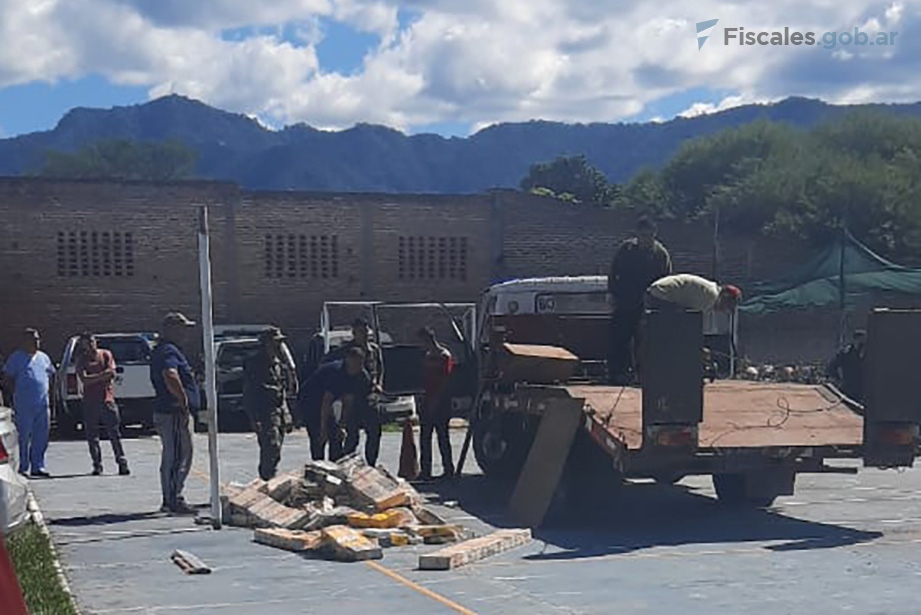 La fiscal sostuvo que, con la asistencia de un can antinarcóticos, los gendarmes detectaron la presencia de drogas en la base de la plancha del camión, de donde se extrajeron un total de 480 paquetes rectangulares con el logo de una marca de automóviles, equivalentes a 481,455 kilogramos de cocaína.