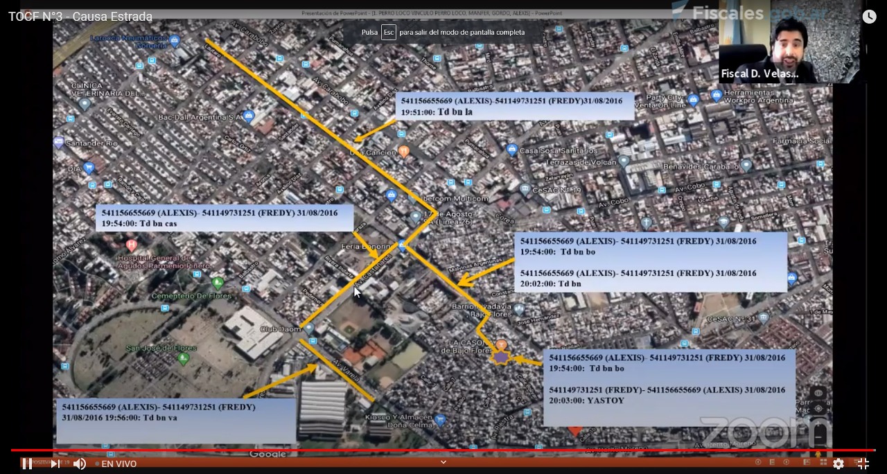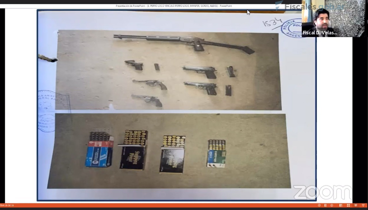Acompañando su exposición con diapositivas, audios y transcripciones de conversaciones, el representante del Ministerio Público Fiscal dividió el alegato en dos sectores: el primero, el viernes pasado, ahondó sobre la venta de cocaína y pasta base. Y durante la jornada de hoy se detallaron los grados de participación en los hechos y los vínculos entre los imputados, que conformaron tres “gerencias”: