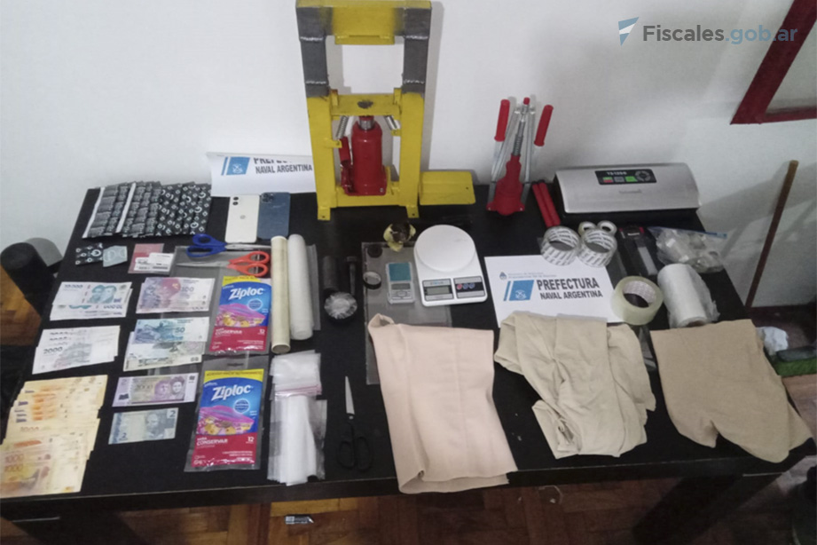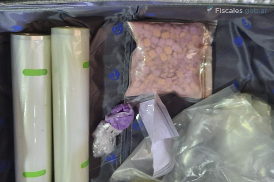 Además, en los procedimientos se incautaron 33 kilogramos de MDMA, 2,5 kilogramos de cocaína sólida, 4,5 litros de cocaína líquida -oculta en botellas de vino-, 1.250 troqueles de LSD, 250 gramos de anfetaminas y 14.000 pastillas de éxtasis. También, secuestraron una prensa de compresión, una prensa manual, una termoselladora, dos balanzas de precisión, 30 celulares, seis notebooks, dos tablets, profilácticos, rollos de papel film, cinta adhesiva y bolsas resellables, entre otros objetos para el acondicionamiento de las drogas, junto a tres vehículos, casi 700 mil pesos, 5.348 dólares y 4.500 euros.