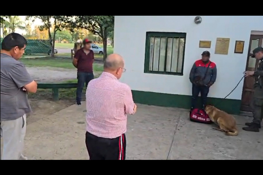 La inspección del can antinarcóticos de Gendarmería dio positiva sobre el bolso de uno de los imputados, que luego manifestaron que habían ingerido cápsulas de cocaína. Foto: Gendarmería Nacional