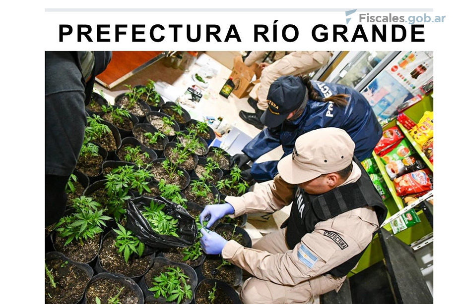 Por orden del Juzgado Federal de Río Grande -en la provincia de Tierra del Fuego, Antártida e Islas del Atlántico Sur-, personal de la Prefectura Naval allanó el sábado pasado un kiosco en el que incautó plantas de marihuana, dinero, celulares y otros objetos vinculados a la venta de droga, en el marco de una investigación sobre presunta comercialización de estupefacientes a cargo del fiscal federal Marcelo Rapoport.