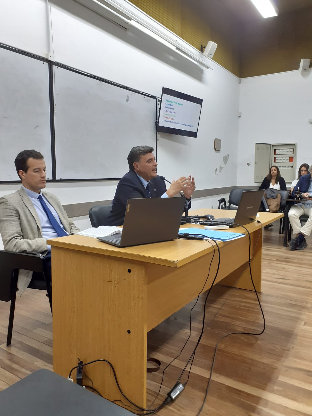 Los funcionarios de PROCUNAR Martín Uriona y Matías Scilabra expusieron sobre el marco normativo nacional de la persecución del tráfico de estupefacientes y Jorge Viltez sobre experiencias exitosas en el marco de las investigaciones realizadas con intervención de esa procuraduría especializada en el distrito Salta.