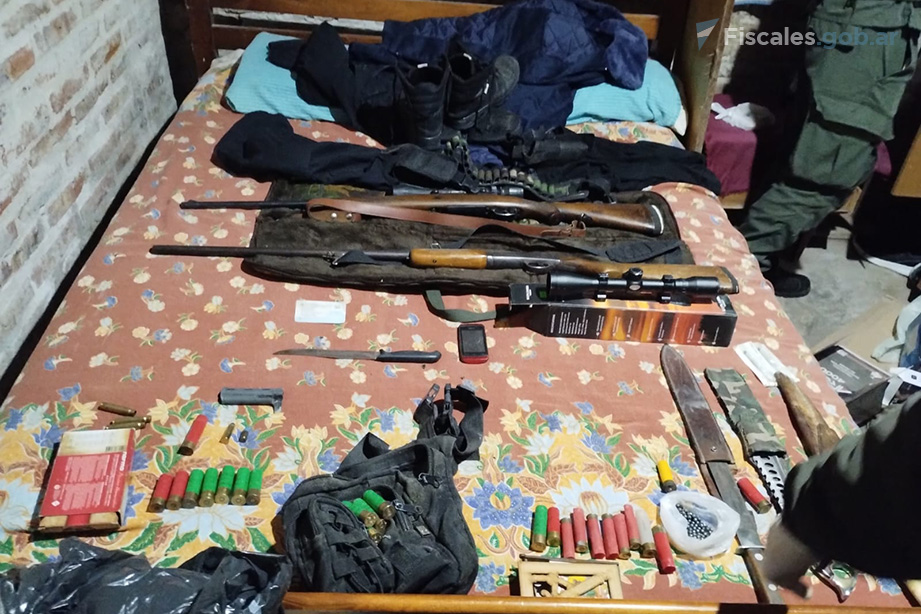 Armas largas, municiones y cuchillos entre los elementos secuestrados en los allanamientos a los policías implicados. Foto: Policía Federal