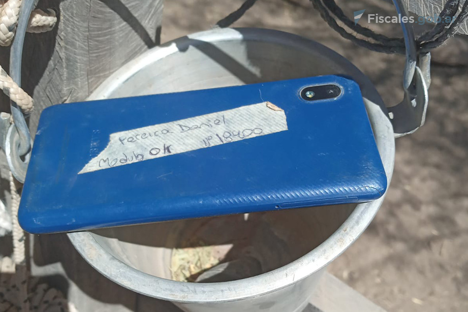El balde y el teléfono. Foto: Gendarmería Nacional.