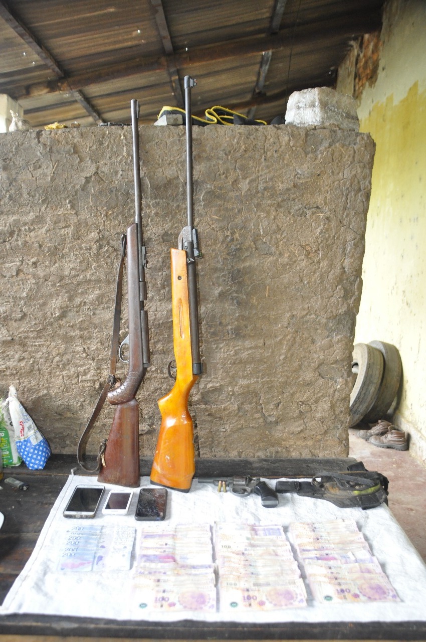 Por otra parte, en los allanamientos a los domicilios particulares de los acusados se secuestraron aproximadamente un millón de pesos y teléfonos celulares. En la casa del cuidador del campo se hallaron paquetes con marihuana y semillas de cannabis sativa. Además se incautaron dos armas de fuego, una camioneta, un automóvil y dos motocicletas.