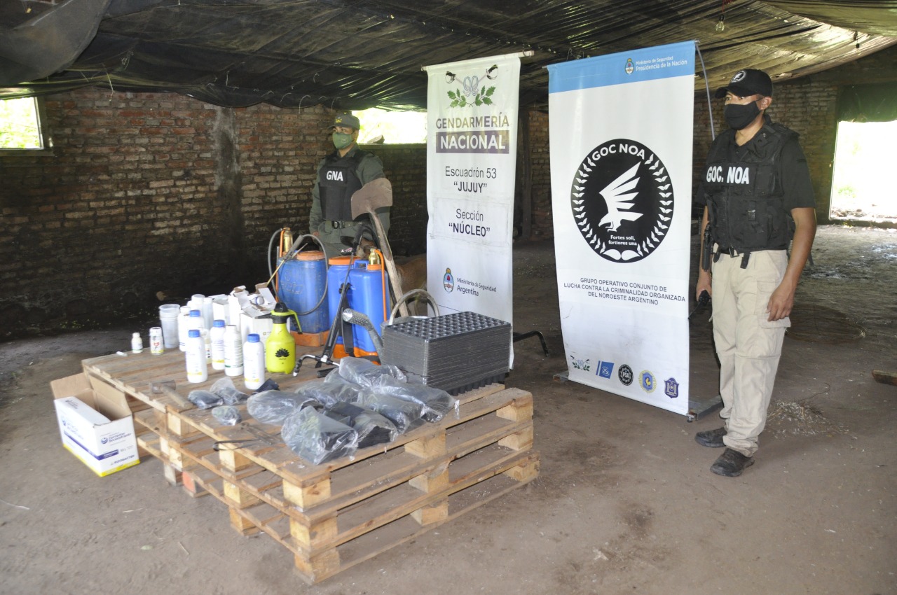 De acuerdo a la investigación, el 4 de febrero de este año se realizaron tres allanamientos por parte del Escuadrón 53 de Gendarmería Nacional y del Grupo Operativo Conjunto NOA. Además de la detención del hijo del dueño de la finca y de un cuidador de la propiedad, se secuestraron en el lugar más de diez mil plantas y plantines de marihuana, así como también 75 kilos del mismo estupefaciente.