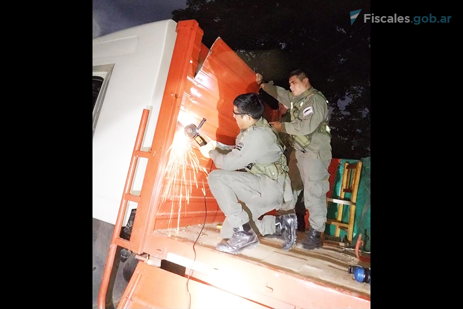 Luego detectaron en la pared de la baranda principal, entre la cabina y el chasis, una soldadura sellada con masilla y, en la parte superior, un chapón con tornillos. Tras removerlos, quedó expuesto un habitáculo en el que hallaron 422 paquetes. Las pruebas de campo sobre la sustancia que contenía dieron resultado positivo para cocaína.