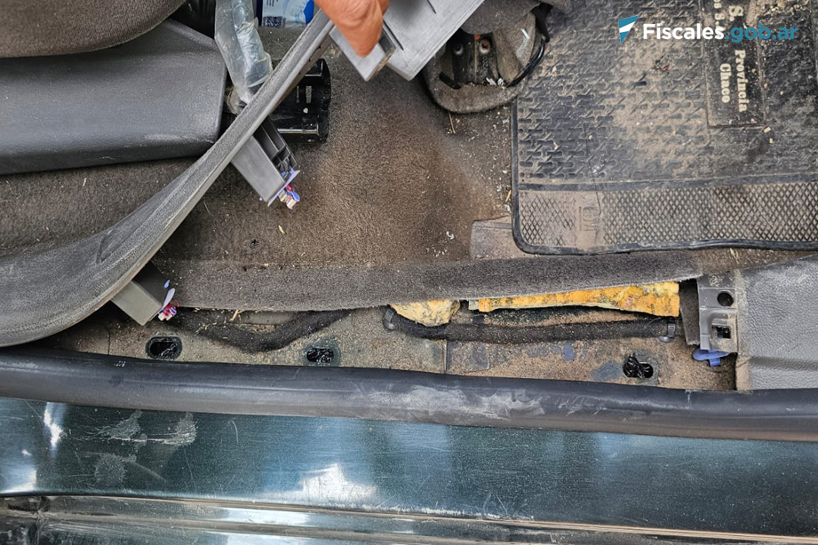 Al efectuar el control de rutina, cerca de la gruta del Gauchito Gil, los gendarmes advirtieron anomalías en los zócalos de las puertas del vehículo. Así, observaron que, de uno de los paneles plásticos negros sobresalía lo que parecía ser una bolsa insertada dentro.