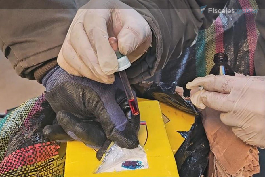 Precisó que otros efectivos de Gendarmería Nacional, luego de comunicar lo ocurrido a los auxiliares fiscales Matías Aguilera y Rafael Lamas, avanzaron con la revisión la caja de la camioneta frente a varios testigos y encontraron al menos ocho bolsas tipo arpillera que en su interior contenían cajas, que, a su vez, en su interior poseían paquetes rectangulares color amarillo, gris y metalizado con una imagen estampada perteneciente a la escudería Ferrari. Tras abrirlas, pudieron constatar que contenían una sustancia compacta, de color blancuzca. A raíz de ello, realizaron la prueba de Narcotest, que dio resultado positivo para la presencia de cocaína, mientras que, del pesaje de los 400 paquetes, se corroboró que se trataban de 420 kilos.