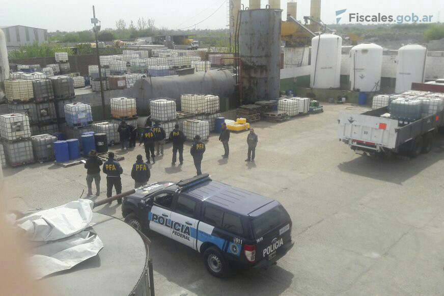 El hallazgo de 3800 kilos de ácido clorhídrico, de más de 1000 litros de ácido sulfúrico y de 30 kilos de soda caústica y de otros precursores químicos utilizados para la elaboración de estupefacientes fueron los logros más importantes de una serie de procedimientos realizados en los últimos días en fincas de la Provincia de Buenos Aires y de la Capital Federal, en una investigación impulsada por el fiscal federal de Tucumán Pablo Camuña, con la asistencia de la Procuraduría de Narcocriminalidad (Procunar).