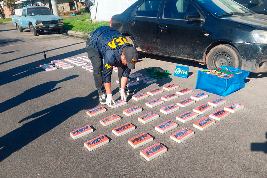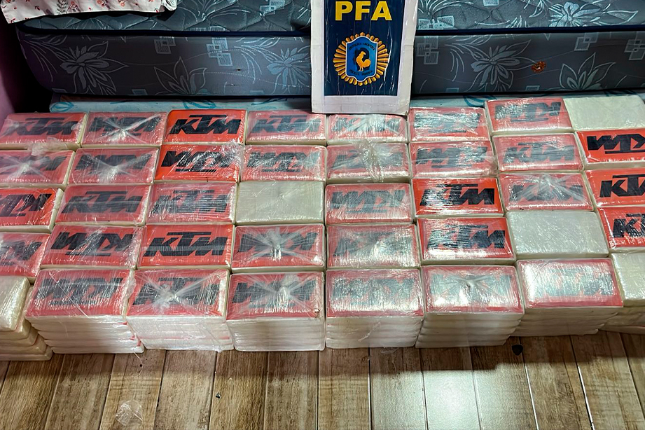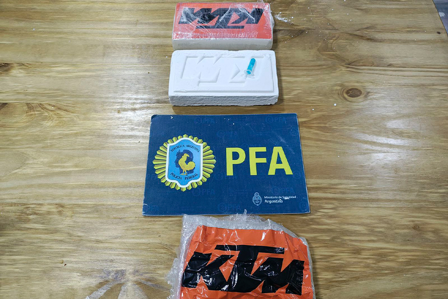 Los ladrillos de cocaína incautados tenían como sello distintivo las letras "KTM". Foto: Policía Federal