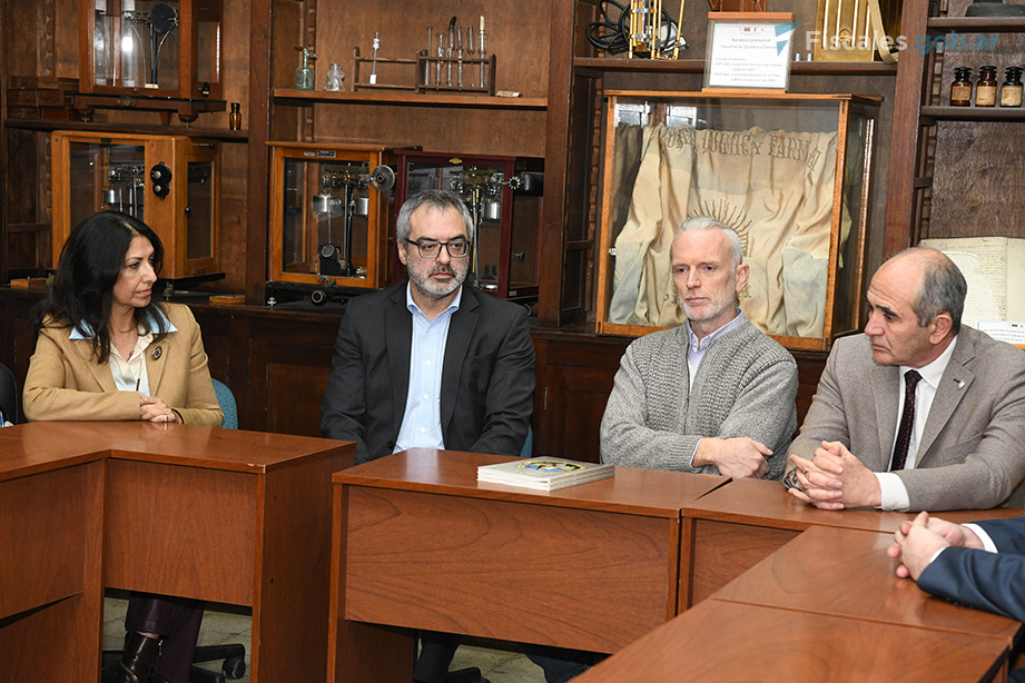 El proyecto se encuentra a cargo del licenciado Oswaldo Aranda y del doctor Esteban Colman, de Exactas, y del doctor Christian Weber, de Agrarias y Forestales. Todos ellos también participaron de la reunión previa desarrollada en la biblioteca museo Carlos Spegazzini y luego guiaron la recorrida por los laboratorios del Área de Producción de Semisólidos y Líquidos, junto a los secretarios de Extensión, Ignacio León, y de Asuntos Académicos, Leandro Andrini, ambos de Exactas.