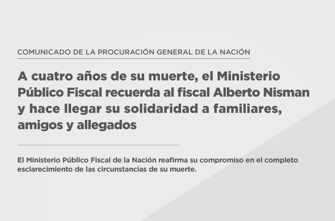 A cuatro años de su muerte, el Ministerio Público Fiscal recuerda al fiscal Alberto Nisman y hace llegar su solidaridad a familiares, amigos y allegados