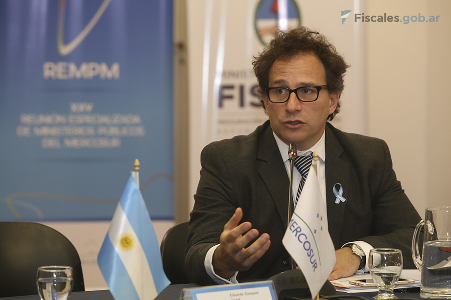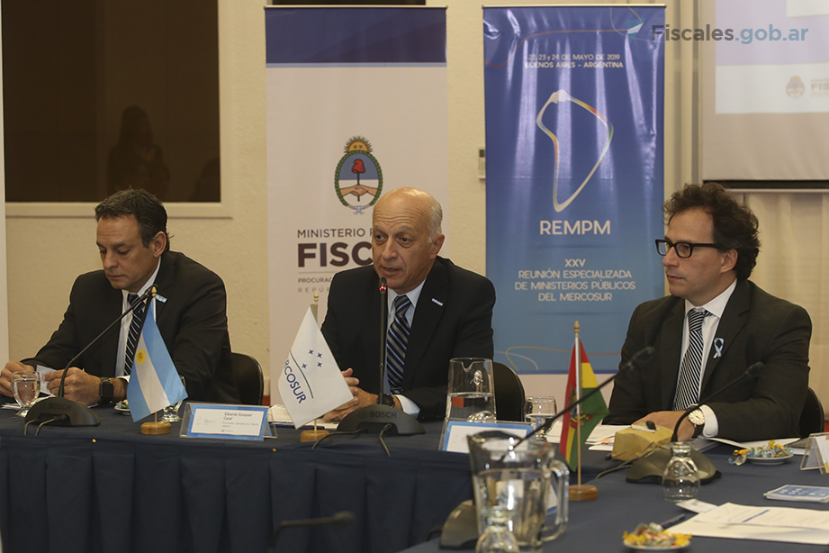 El procurador general de la Nación interino, Eduardo Casal, junto al secretario de Coordinación Institucional, Juan Manuel Olima Espel, inauguraron esta mañana el encuentro preparatorio para la XXV Reunión Especializada de Ministerios Públicos del MERCOSUR (REMPM), que se desarrollará este viernes en la sede del organismo ubicada en la calle Perón al 600, en el microcentro de la Ciudad Autónoma de Buenos Aires.