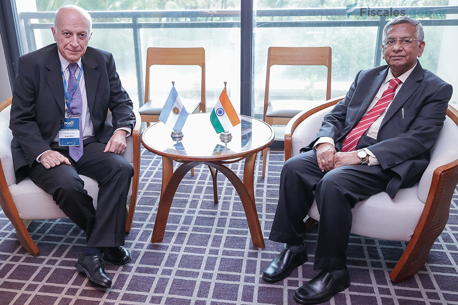 Casal mantuvo ayer tres encuentros bilaterales, el primero de ellos fue por la mañana con el fiscal general de la India Sh.R. Venkataramani, quien fue nombrado en ese cargo en septiembre de 2022 y cuenta con más de 44 años de práctica ante la Corte Suprema de la India y ante diversas cortes de su país. Está especializado en diversas ramas del derecho como ser constitucional, penal, derechos humanos y ambiental, entre otros.