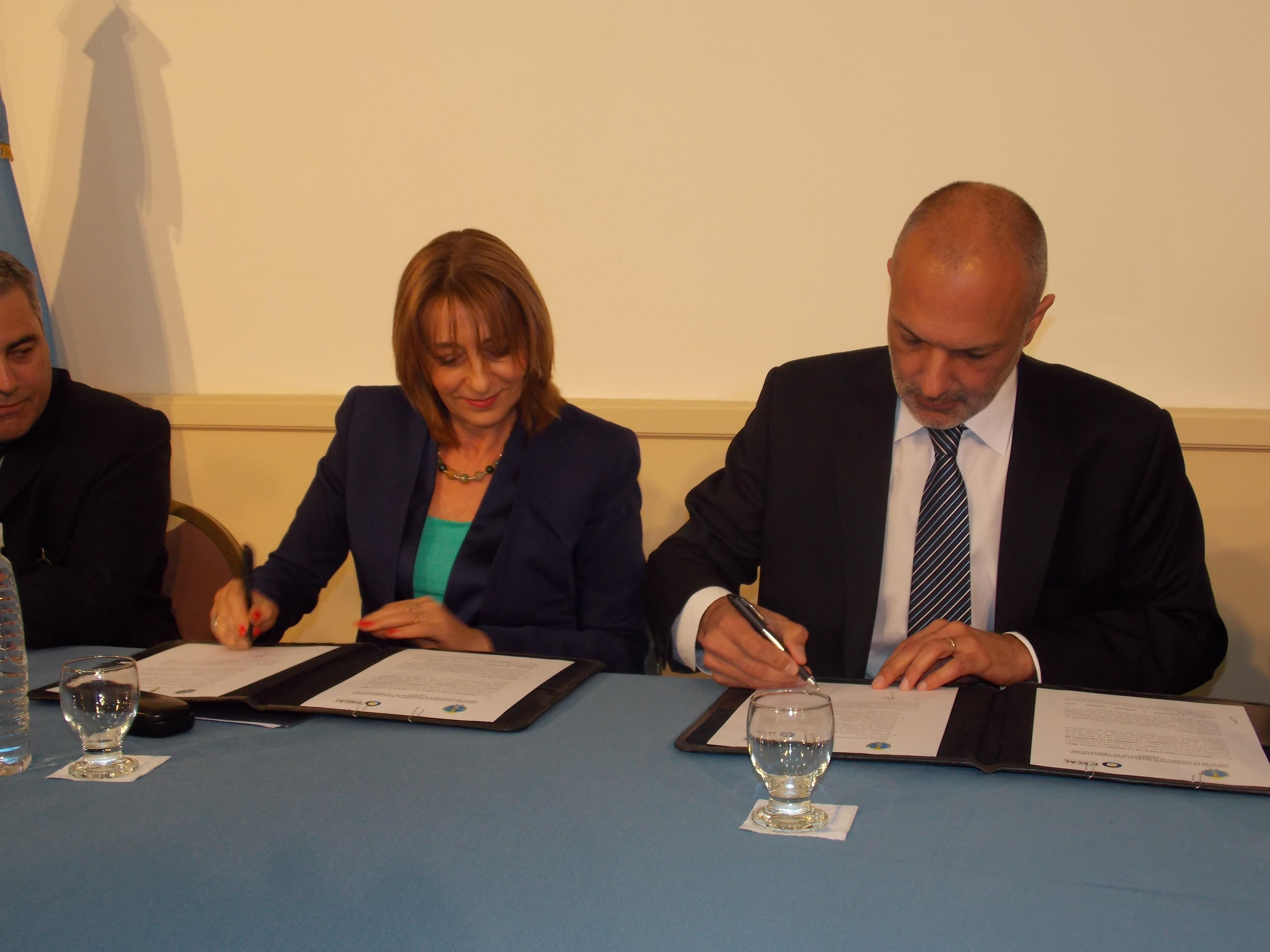Por la tarde, la titular del Ministerio Público compartió una reunión y firmó convenios de colaboración con el vicepresidente del Superior Tribunal de Justicia de la provincia, Jorge Pfleger, y el procurador General de Chubut, Jorge Luis Miquelarena.