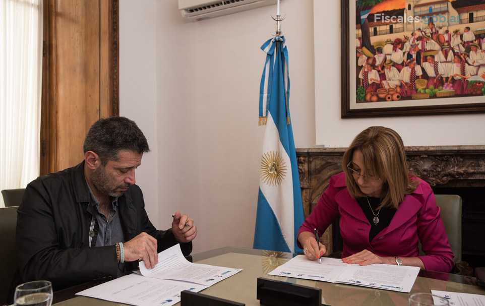 La procuradora General de la Nación firmó ayer un convenio de colaboración con el rector de la Universidad Metropolitana para la Educación y el Trabajo (UMET), Nicolás Trotta, y el secretario general de la Federación Argentina de Trabajadores de Edificios de Renta y Horizontal, Víctor Santamaría. El acuerdo permitirá el trabajo conjunto en capacitación y formación profesional en acceso a la justicia, participación ciudadana y derechos humanos.