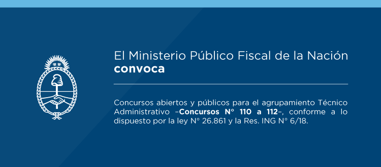 El procurador general de la Nación interino, Eduardo Ezequiel Casal, oficializó mediante Resolución ING N°6/2018 –y conforme lo dispuesto por la Ley 26.681- la convocatoria a los concursos abiertos y públicos de Ingreso Democrático e Igualitario al Ministerio Público Fiscal N°110, N°111 y N° 112, para cubrir vacantes de Técnico Administrativo en las sedes del organismo en las ciudades de Mar del Plata, Bahía Blanca y Neuquén.