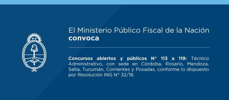 El procurador general de la Nación interino, Eduardo Ezequiel Casal, oficializó la convocatoria de los concursos abiertos y públicos de Ingreso Democrático e Igualitario al Ministerio Público Fiscal para el agrupamiento de Técnicos Administrativos. De esta forma, de acuerdo a lo dispuesto por la ley N° 26.861 y la Resolución ING N°32/18, se anunció la apertura de los Concursos N° 113 a 119.