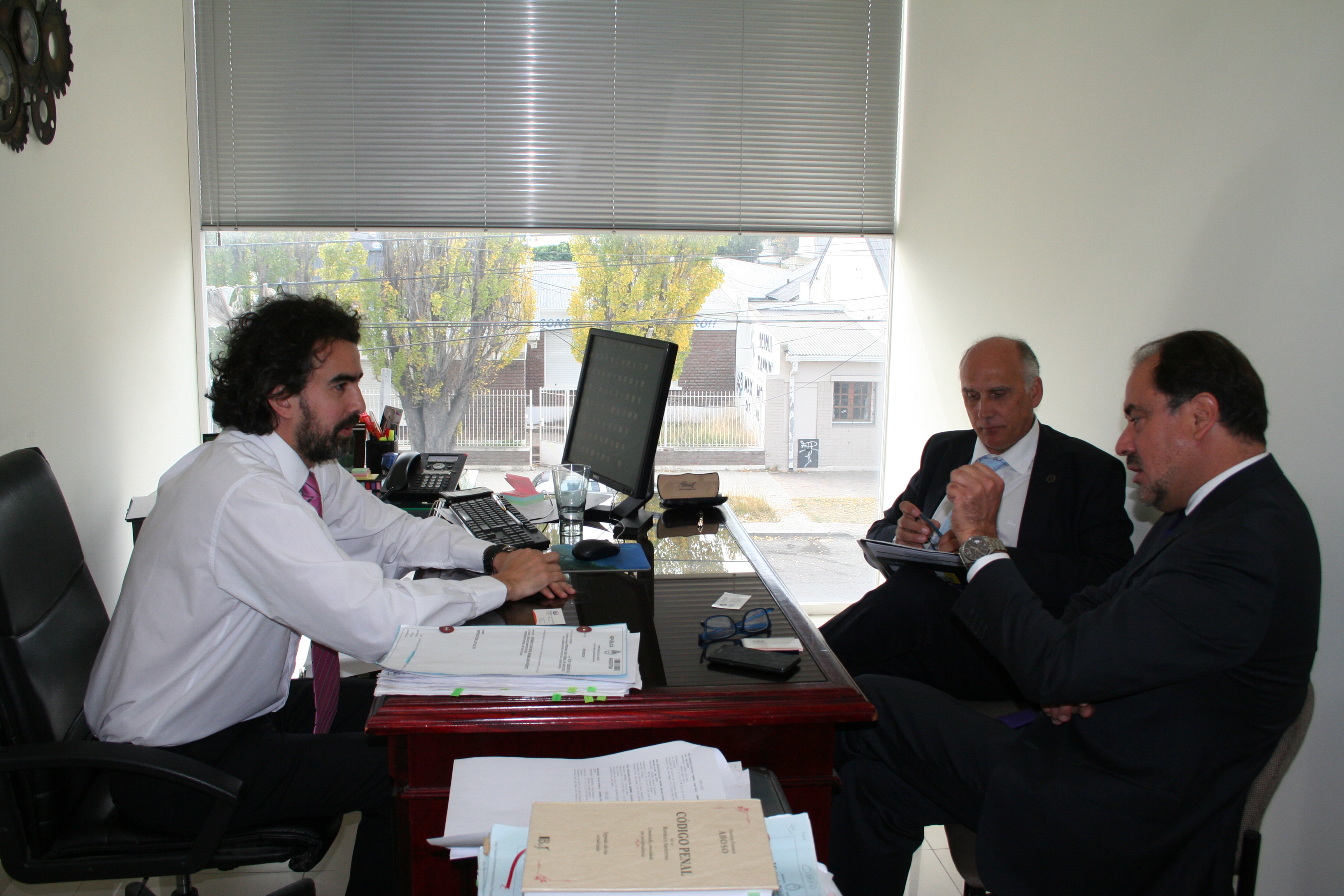 El titular de la Fiscalía General ante el TOF de Santa Cruz, Gonzalo Miranda, se reunió con Gabriel Giordano, fiscal ante el Tribunal Superior de Justicia de Santa Cruz y Alfredo Fonseca Mihovilovic, Director Ejecutivo Regional de la Fiscalía Regional de Magallanes y Antártica Chilena, de cara a la reunión de la Comisión de Cooperación Jurídica en Materia Penal del Comité de Integración Austral Chile-Argentina, que se realizará en la ciudad chilena de Punta Arenas, los próximos 7 y 8 de abril.