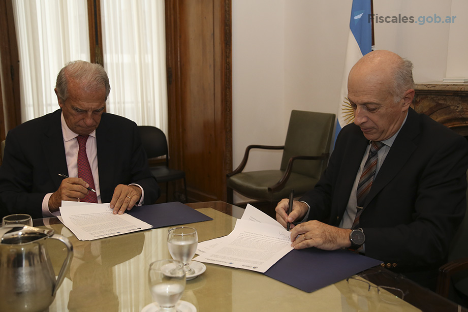 Por el Ministerio Público Fiscal también estuvieron presentes el secretario de Coordinación Institucional Juan Manuel Olima Espel y el prosecretario letrado de la PGN Juan Dóllera, mientras que por la CRJPPF asistieron el responsable del Área Penal, Álvaro Ruiz; el director general de Operaciones Jorge Horacio Nicolás Haddad; el director de Control y Prevención Rodrigo Nicolás Cerutti y el responsable de Comunicación y Prensa Diego de Lisi.