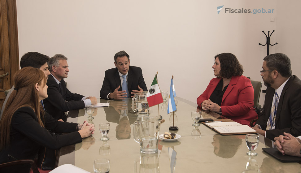 En el marco del “Proyecto de Fortalecimiento Institucional para la implementación de Tribunales de Tratamiento de Drogas”, Juan Manuel Casanovas y Juan Manuel Olima, titulares respectivamente de la Secretaría Disciplinaria y Técnica y de la Secretaría General de Coordinación Institucional de la Procuración General de la Nación, recibieron a una delegación mexicana. Asimismo, también estuvieron presentes funcionarios que integran el “Programa sobre Justicia Terapéutica del Ministerio Público Fiscal”, creado por el Procurador General de la Nación interino, Eduardo Casal, mediante resolución PGN N°75/2018.