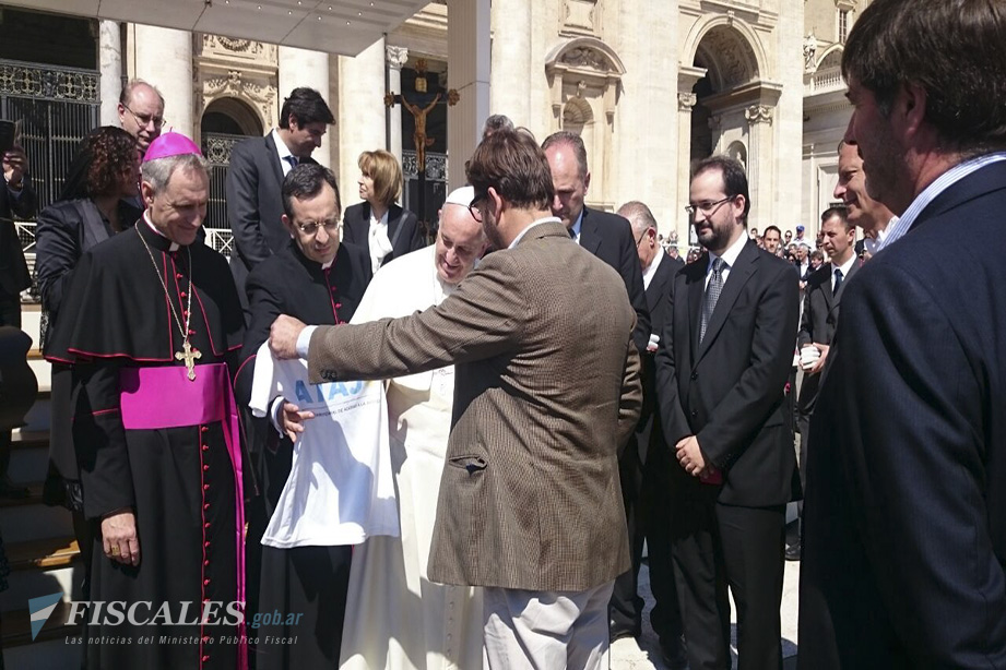 Los representantes del Ministerio Público Fiscal presenciaron la tradicional celebración religiosa de los miércoles en la plaza de San Pedro. Luego, fueron saludados por el Papa Francisco. Cada uno de los invitados tuvo la oportunidad de un breve intercambio.