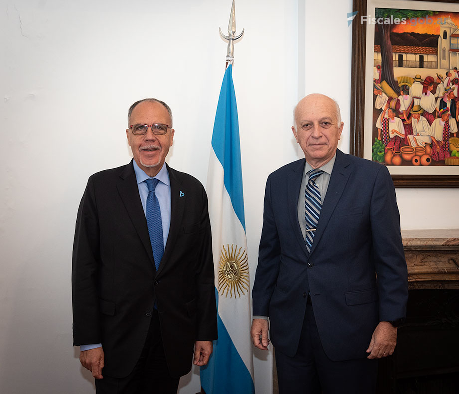 El procurador general de la Nación interino, Eduardo Ezequiel Casal, y el Director Regional de la Oficina de las Naciones Unidas contra la Droga y el Delito (ONUDD/UNODC), con sede en Bogotá, Pierre Lapaque, se reunieron esta mañana con el objetivo de profundizar los vínculos entre ambos organismos. El encuentro tuvo lugar en la sede de la Procuración General de la Nación ubicada en la calle Teniente General Perón 667, en el microcentro porteño.