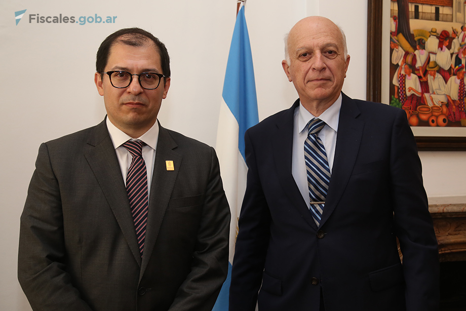 El procurador general de la Nación interino, Eduardo Ezequiel Casal, y el fiscal general de la República de Colombia, Francisco Barbosa, se reunieron esta mañana con el propósito de estrechar los lazos de cooperación interinstitucional. El encuentro tuvo lugar esta mañana en la sede de la Procuración General de la Nación ubicada en la calle Teniente General Perón 667, en el microcentro porteño.