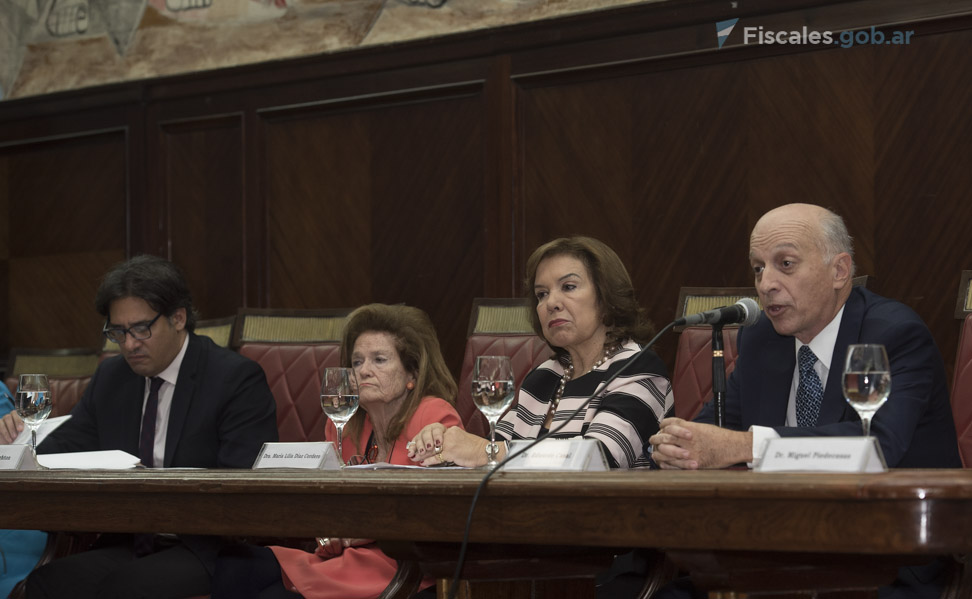 El procurador general de la Nación interino Eduardo Casal participó ayer por la tarde de las IV Jornadas Académicas “90° Aniversario de la Asociación de Magistrados y Funcionarios de la Justicia Nacional, afianzando la independencia judicial”, que tuvieron lugar en el Aula Magna de la la Facultad de Derecho de la Universidad de Buenos Aires. También estuvieron presentes el Ministro de Justicia y Derechos Humanos de la Nación, Germán Garavano; la Vicepresidenta de la Corte Suprema de Justicia de la Nación, Elena Highton de Nolasco; el presidente del Consejo de la Magistratura de la Nación, Miguel Piedecasas; la defensora general de la Nación, Stella Maris Martínez; el decano de la Facultad de Derecho, Alberto Bueres; y la presidente de la AMFJN, María L. Gómez Alonso de Díaz Cordero.