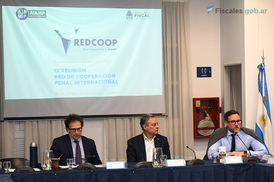 El secretario de Coordinación Institucional de la Procuración General de la Nación, Juan Manuel Olima Espel, el titular de la Dirección General de Cooperación Regional e Internacional (DIGCRI) del MPF argentino, Diego Solernó, y el coordinador del Programa CRIMJUST de la Oficina de las Naciones Unidas contra la Droga y el Delito (UNODC), Mario Hemmerling, cerraron este jueves la IX Reunión de la Red de Cooperación Penal Internacional (RedCoop) de la Asociación Iberoamericana de Ministerios Públicos (AIAMP), que se celebró en Buenos Aires durante tres jornadas consecutivas que comenzaron el martes.