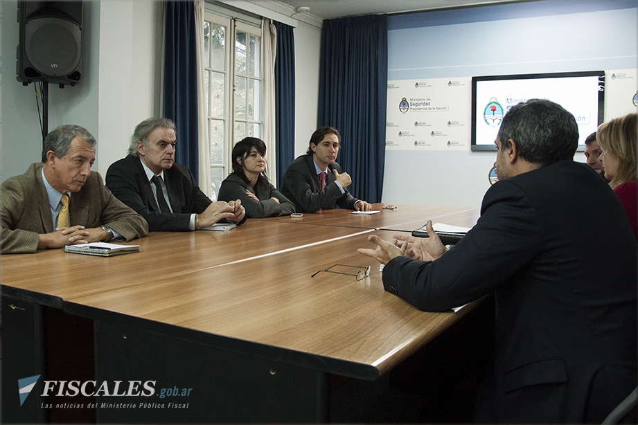Este mediodía, en la sede del Ministerio de Seguridad de la Nación, miembros de la Comisión de fiscales recientemente creada para elaborar recomendaciones sobre los “secuestros virtuales” se reunieron con funcionarios de ese organismo. De la comitiva del MPF participaron Diego García Yomha, Ana Yacobucci, Paula Asaro, Estela Andrades y Horacio Azzolin. Entre otros temas, se discutieron cuestiones vinculadas a la investigación, casos generales, tareas de prevención y comunicación sobre este tipo de delito. Asimismo, comenzaron a proyectar el trabajo conjunto y coordinado entre ambos organismos.