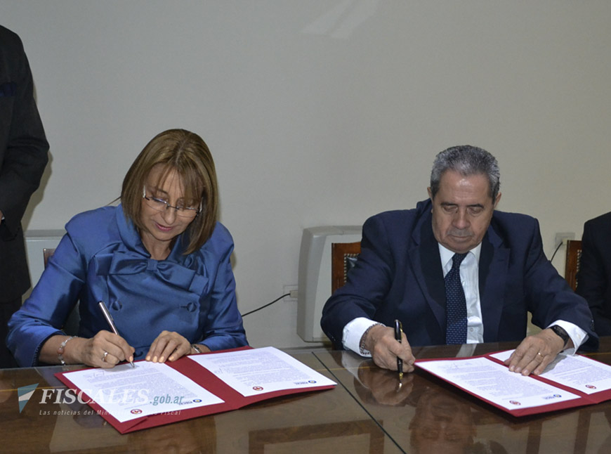 La procuradora general de la Nación, Alejandra Gils Carbó y el gobernador de la provincia de San Luis, Alberto Rodríguez Saá firmaron hoy al mediodía un convenio de cooperación tendiente a profundizar y mejorar la persecución penal en materia de criminalidad organizada, especialmente en actividades vinculadas a la narcocriminalidad, el lavado de activos y la trata de personas.