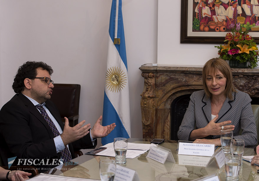 La procuradora general de la Nación, Alejandra Gils Carbó, mantuvo hoy por la mañana un encuentro con autoridades de la secretaría nacional de la Niñez, Adolescencia y Familia del Ministerio de Desarrollo Social. La reunión, que se desarrolló en la sede del Ministerio Público Fiscal, tuvo como objetivo el intercambio de impresiones, experiencias y abordajes en materia de protección integral de los derechos de niños, niñas y jóvenes.