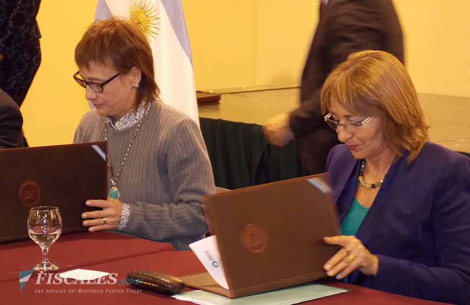 La procuradora general de la Nación, Alejandra Gils Carbó, presentó en Ushuaia al fiscal coordinador del distrito Tierra del Fuego, Adrián García Lois, y firmó junto a la gobernadora de la Provincia, Fabiana Ríos, convenios de cooperación para coordinar acciones tendientes a desarrollar en forma conjunta programas y proyectos de carácter científico, técnico, de capacitación e investigación para combatir la criminalidad organizada.