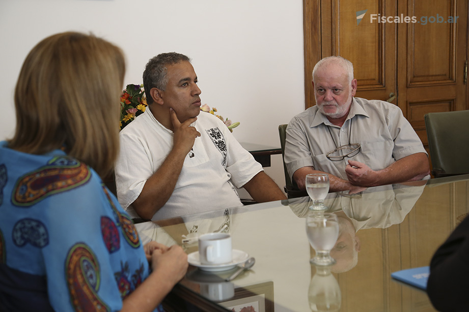 La procuradora general de la Nación, Alejandra Gils Carbó, se reunió hoy con el obispo de la diócesis Merlo-Moreno, Fernando Maletti, y con el cura Eduardo Farrell, en el marco de un encuentro en el que se abordaron las diversas aristas del trabajo desarrollado en materia de acceso a la justicia, especialmente en el barrio Sagrado Corazón de Cuartel V. De la reunión participaron también el titular del Programa de Acceso Comunitario a la Justicia (ATAJO), Julián Axat; la secretaria de Coordinación Institucional, Mariela Labozzetta; y el director de la Dirección de Comunicación Institucional, Luis Villanueva.