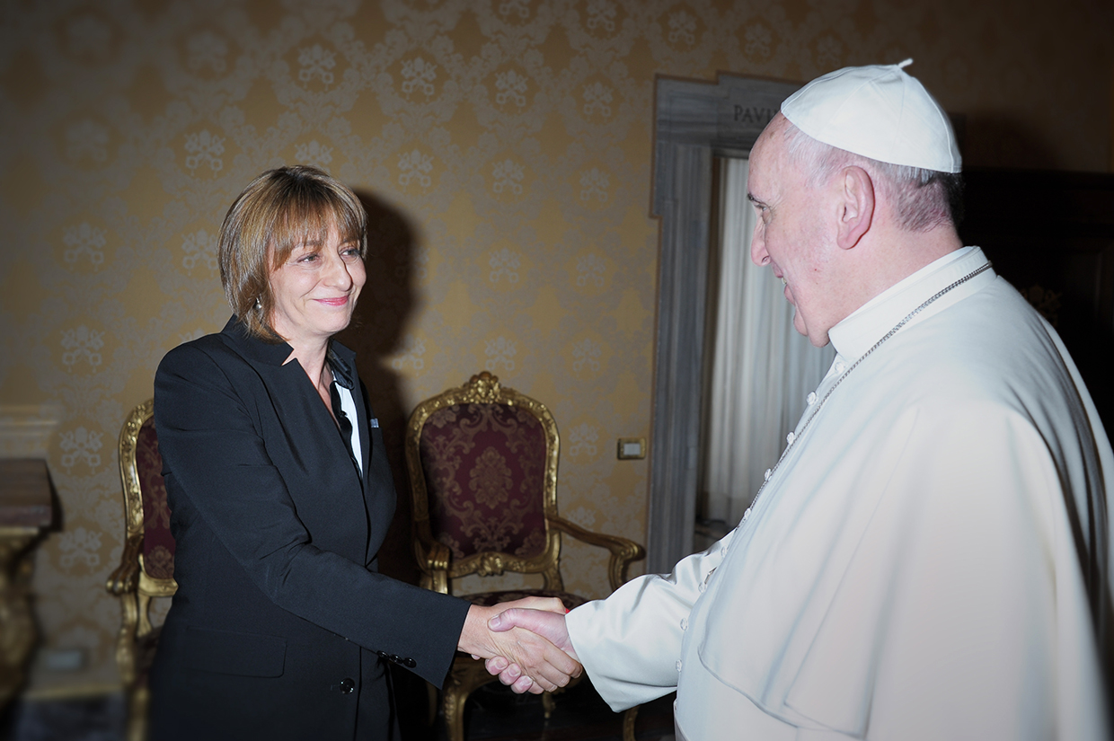 La Procuradora fue recibida por el Sumo Pontífice, a quien le obsequió dos libros editados por mujeres privadas de libertad y le comentó algunos aspectos de su gestión vinculados a la investigación y sanción de la violencia institucional en cárceles, que lleva adelante la Procuraduría de Violencia Institucional (PROCUVIN). El Papa Francisco la felicitó por las iniciativas implementadas y le manifestó la especial relevancia que este tema tiene para él.