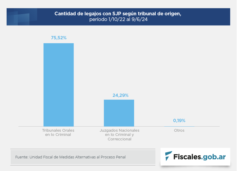 Así, en los 20 meses analizados, el promedio mensual de SJP concedidas e informadas a la UFIMAPP es de 209 casos (158 casos en los Tribunales Orales y 51 en los Juzgados Nacionales).