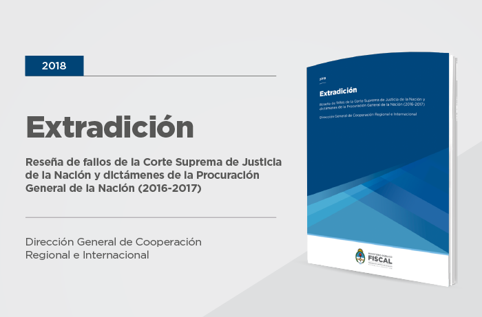 La Dirección General de Cooperación Regional e Internacional (DIGCRI) presentó un compendio actualizado que contiene los extractos más relevantes de dictámenes de la Procuración General de la Nación y jurisprudencia de la Corte Suprema de Justicia de la Nación, en materia de extradiciones durante los años 2016 y 2017.