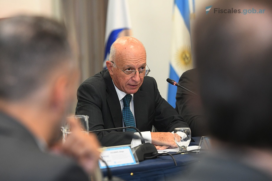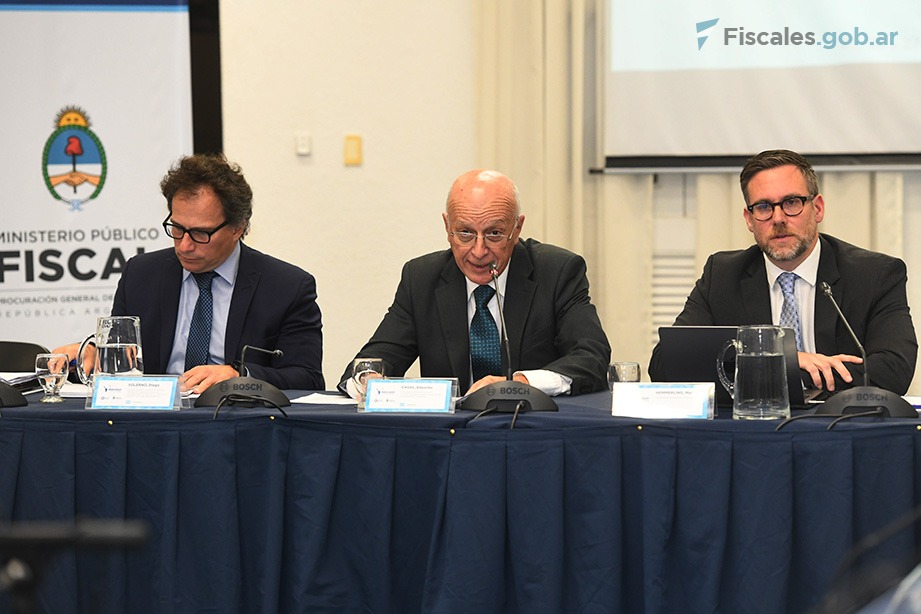 El procurador general de la Nación interino y presidente de la Asociación Iberoamericana de Ministerios Públicos AIAMP, Eduardo Casal, abrió este martes la IX Reunión de la Red de Cooperación Penal Internacional (AIAMP REDCOOP) junto al coordinador del programa CRIMJUST de la Oficina de las Naciones Unidas contra la Droga y el Delito (UNODC), Mario Hemmerling, y el titular de la Dirección General de Cooperación Regional e Internacional (DIGCRI) del MPF argentino y coordinador de la REDCOOP, Diego Solernó, quien moderó el panel de apertura de la actividad, realizada en el salón auditorio de la Procuración General de la Nación.