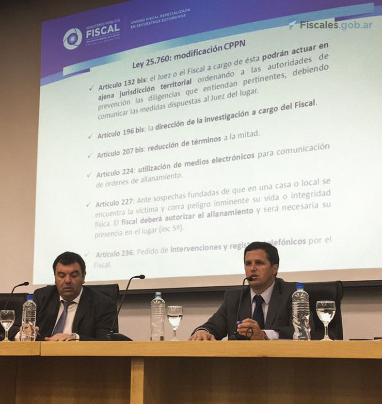 Por parte del MPF asistieron además los fiscales federales Sebastián Basso y Sergio Mola, de Morón y Lomas de Zamora, respectivamente, dos de las jurisdicciones que registran mayor número de secuestros extorsivos.