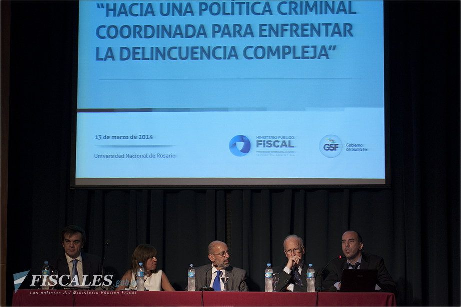 Tanto Pellegrini como Saccone expusieron en el panel inaugural, donde estuvieron acompañados por el Fiscal General del Ministerio Público de la Acusación santafecino, Julio De Olazabal, el Ministro de Justicia y Derechos Humanos de la provincia, Juan Lewis, y el decano de la Facultad de Derecho de la Universidad Nacional de Rosario, Ernesto Granados.