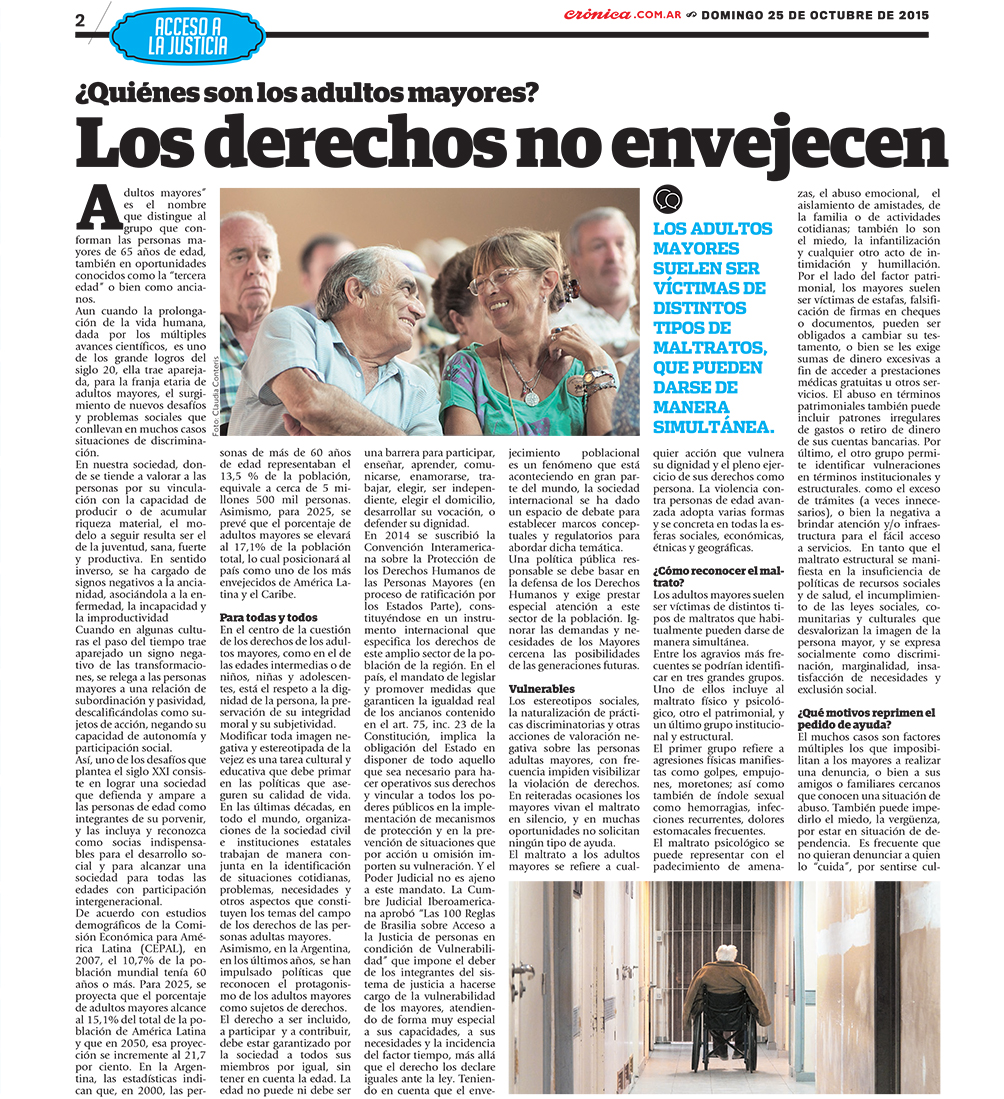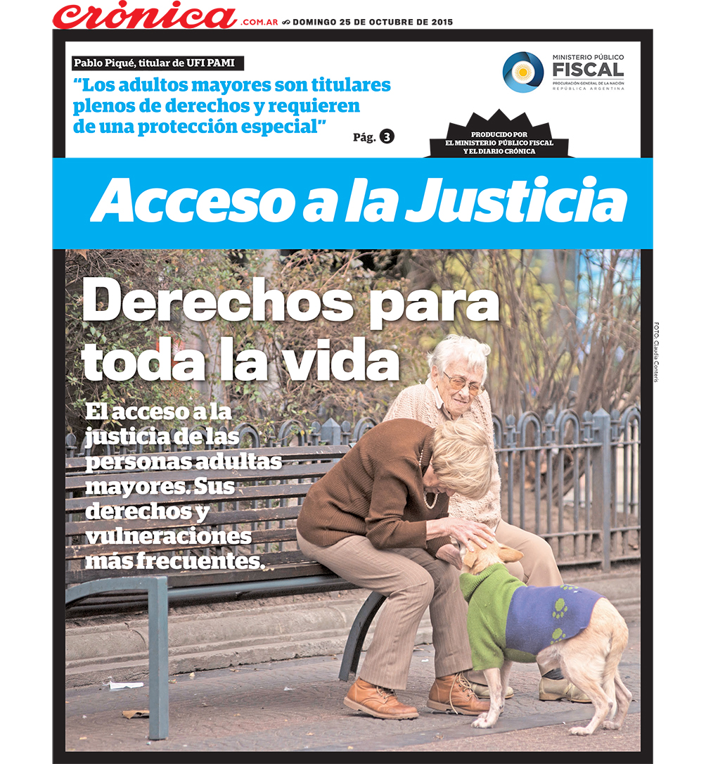 El suplemento “Acceso a la Justicia” realizado por la Procuración General de la Nación acompañó ayer una vez más la edición del diario Crónica. En esta oportunidad, estuvo dedicado al acceso a la justicia de los adultos mayores, sus derechos y vulneraciones más frecuentes.