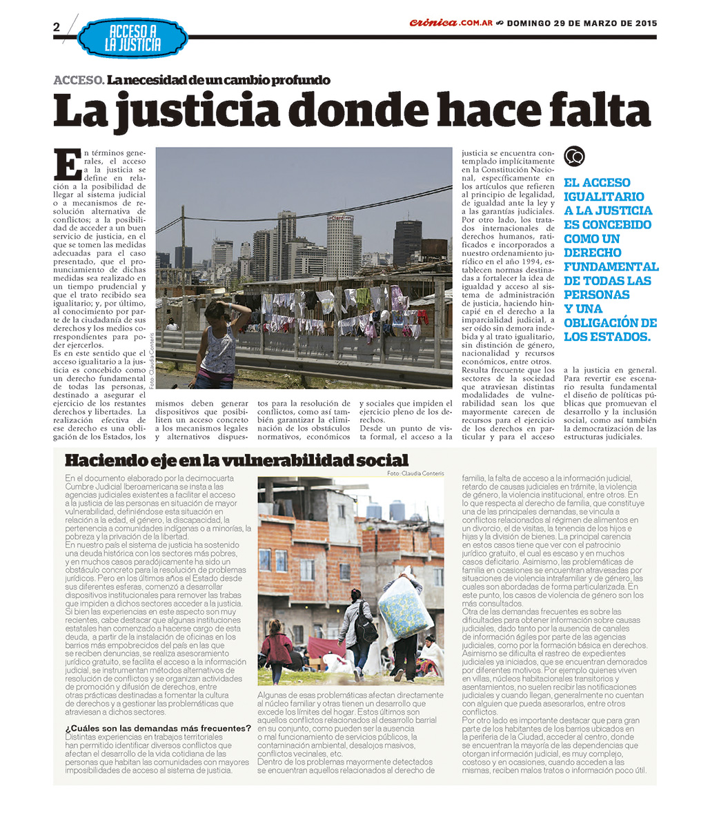 El domingo, el suplemento “Acceso a la Justicia” realizado por la Procuración General de la Nación acompañó a la edición del diario Crónica. En esta oportunidad, estuvo dedicado al deber de la justicia de llegar a los sectores más vulnerables de la sociedad.