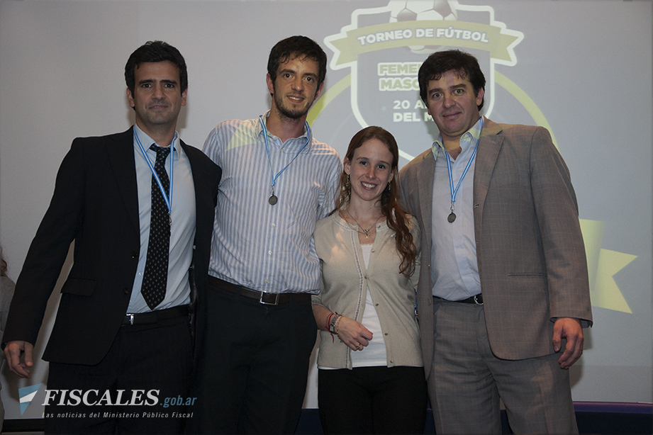 Todavía no eran las 15:00 y la entrada del Salón Nelly Ortiz de la sede de Avenida de Mayo de la Procuración General estaba colmada de gente. Se trataba de compañeras y compañeros de trabajo, amigos, colegas y jefes de distintas áreas que se acercaron a saludar y celebrar la entrega de premios del Torneo de Futbol 20 años del MPF. Flashes de fotos sacadas con celulares, chistes, comentarios y chicanas sobre de los partidos y unas cuantas anécdotas formaban parte del folclore. No había dudas: ya se empezaba a palpitar la ceremonia.