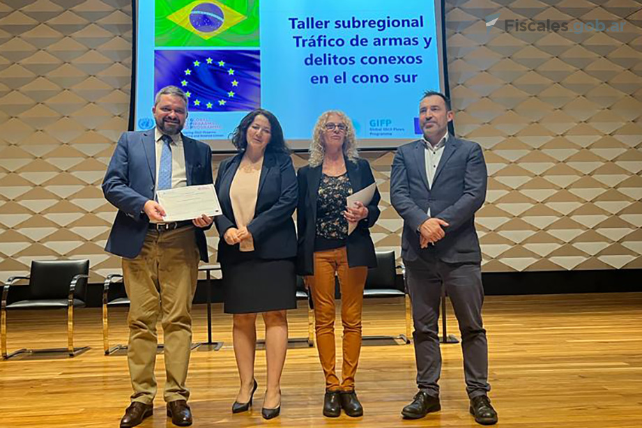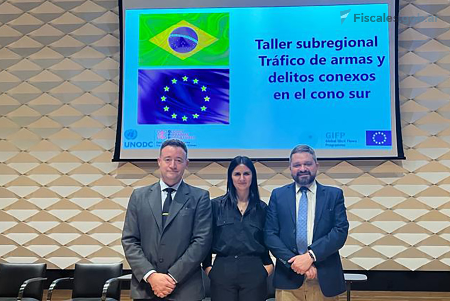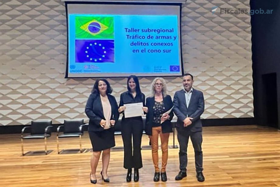 El fiscal general adjunto de la Procuración General de la Nación, Gabriel González Da Silva, a cargo de la Unidad Fiscal Especializada en la Investigación de ilícitos con armas de fuego, explosivos y demás materiales controlados (UFI-ARM), junto con la auxiliar fiscal de esa dependencia, María Paz Cantoni, en representación del Ministerio Público Fiscal de la Nación, participaron la semana pasada en Brasilia de la “Reunión de Grupo Informal de Contacto de la Triple Frontera y Chile” y del “Taller Subregional de Tráfico de Armas y delitos conexos en el Cono Sur –Prueba Electrónica y Cooperación Internacional”, organizados por la Oficina de las Naciones Unidas contra la Droga y el Delito (UNODC) en el marco del Programa Global de Armas de Fuego (Global Firearms Programme), creado para contrarrestar el tráfico ilícito de armas de fuego y delitos conexos.