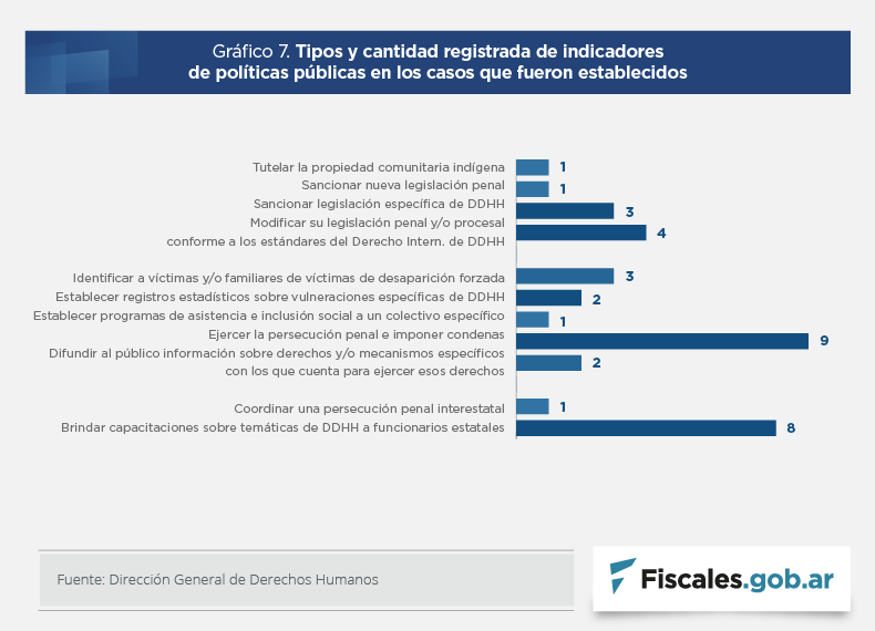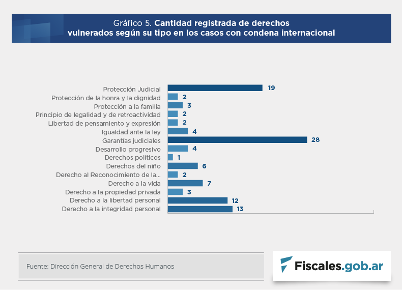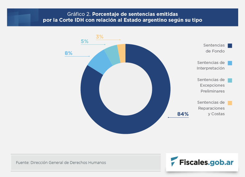 Por otra parte, presentan un análisis estadístico de las 29 sentencias de fondo en las cuales se determinó la responsabilidad internacional del Estado. Allí exploran distinta información vinculada con:
