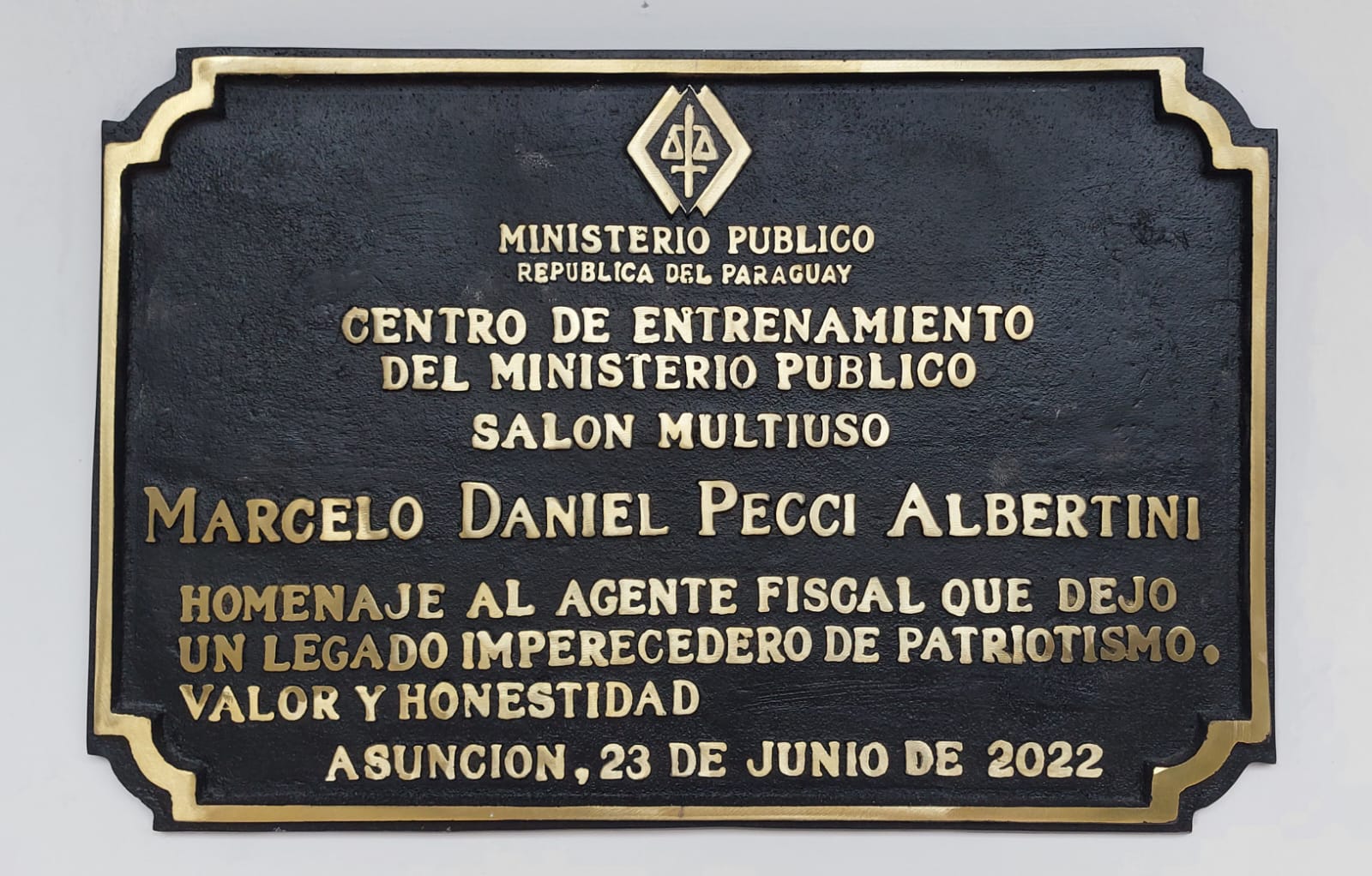 Al comenzar la jornada, los fiscales generales y delegaciones se desplazaron a la sede del Ministerio Público de Paraguay e inauguraron una sala con el nombre del fiscal Marcelo Pecci, asesinado en Colombia en mayo pasado, y le rindieron homenaje junto a su familia.
