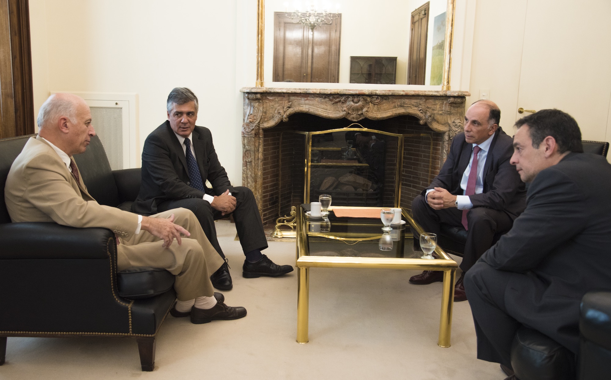 El procurador Eduardo Casal mantuvo un encuentro con Juan Esteban Cicciaro y a Rodolfo Pociello Argerich, presidente y vicepresidente primero, respectivamente, de la Cámara Nacional de Apelaciones en lo Criminal y Correccional. Durante la reunión se trataron temas institucionales y asuntos de interés común. Por parte de la PGN participó además el secretario de Coordinación Institucional Juan Manuel Olima Espel.